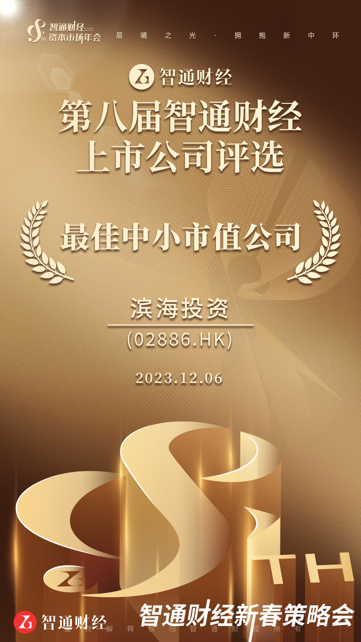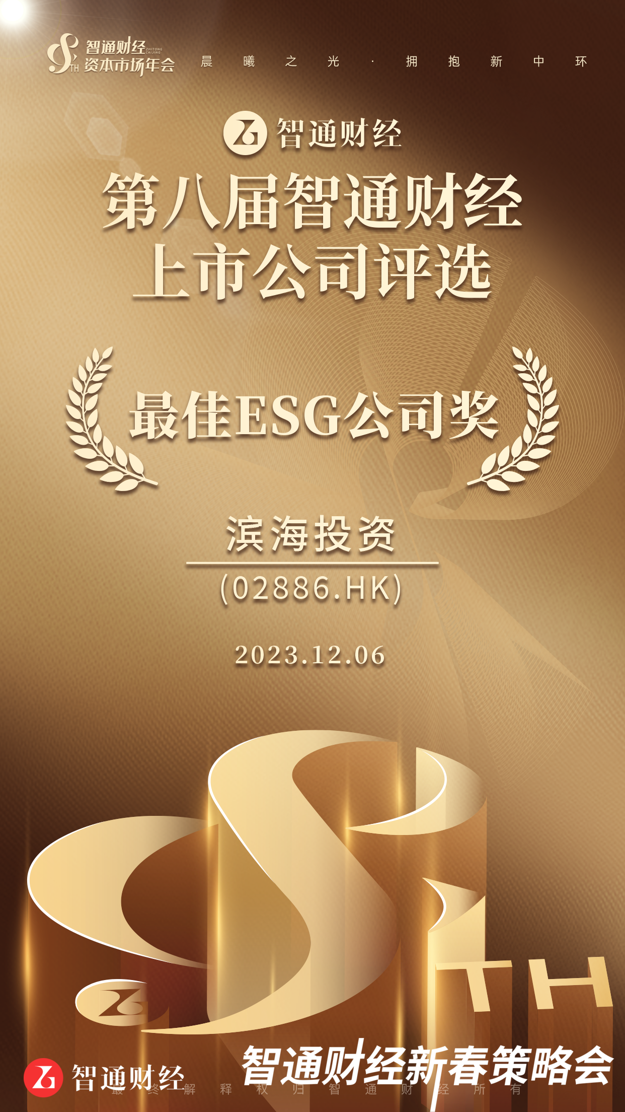 濱海投資(02886)在“第八屆智通財(cái)經(jīng)資本市場(chǎng)年會(huì)暨上市公司頒獎(jiǎng)典禮”上,榮獲“最佳中小市值公司”及“最佳ESG公司獎(jiǎng)”獎(jiǎng)項(xiàng)。